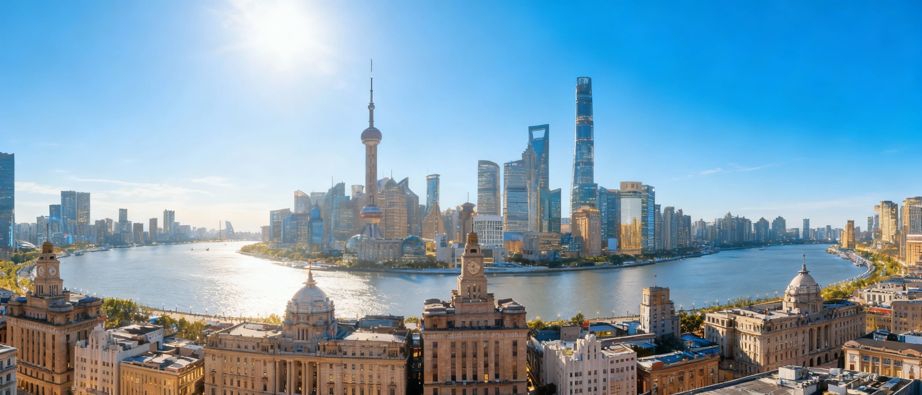 shimmering skyscrapers across the Huangpu River