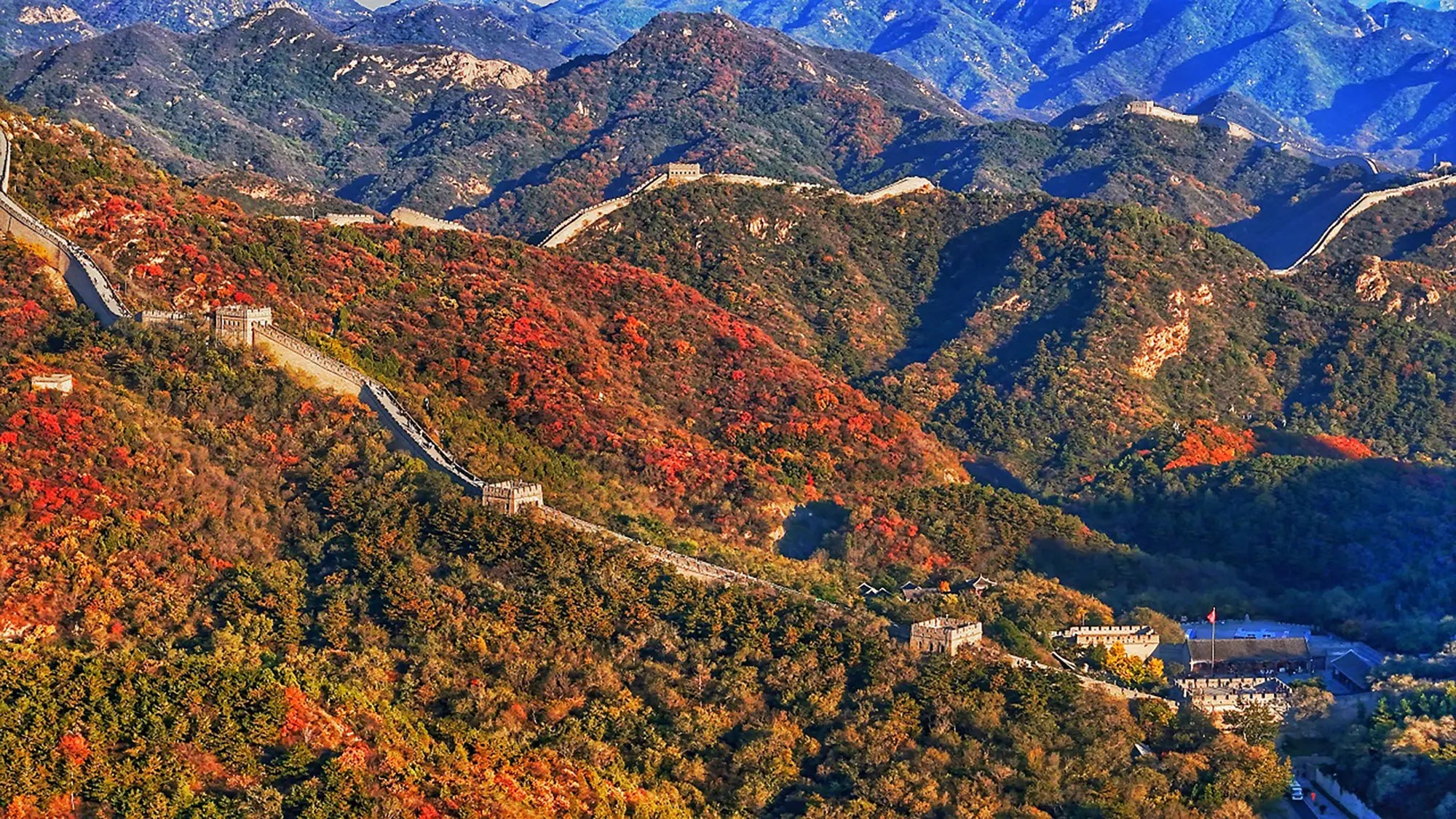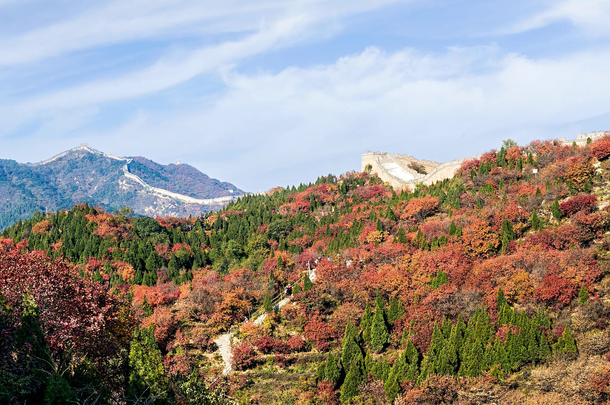 🍂 In autumn, the Wall is blanketed by fiery red foliage, creating a visual masterpiece.