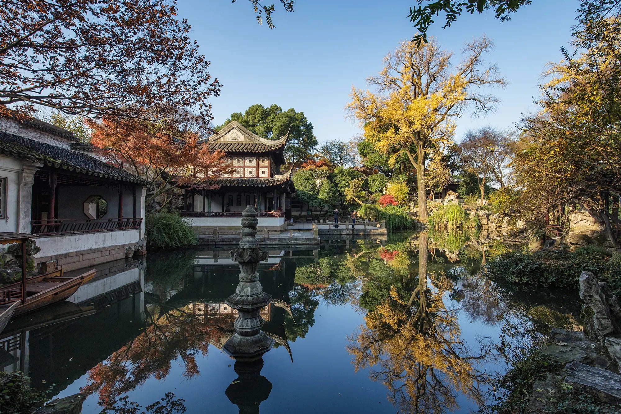 The garden is famous for its elegant pavilions, jade-colored ponds, intricate rock formations, and winding pathways, all surrounded by lush greenery. Designed with four thematic sections, visitors can experience a variety of scenes—from serene natural landscapes and peaceful countrysides to picturesque mountain forests and vibrant flower gardens. Each section tells its own story, reflecting the refined tastes of the Ming and Qing Dynasty elite.
